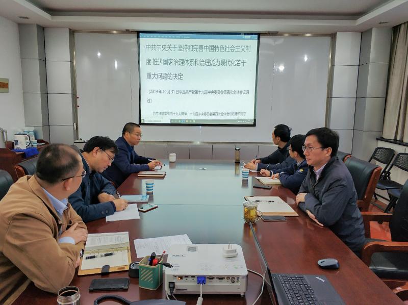 11月19日上午,工程設計公司召開黨總支支委會暨公司領導班子會深入學習黨的十九屆四中全會精神,總支副書記孫峻主持會議,帶領大家學習,重點對《中共中央關于堅持和完善中國特色社會主義制度、推進國家治理體系和治理能力現代化若干重大問題的決定》(以下簡稱“決定”)作了深刻而細致的解讀。